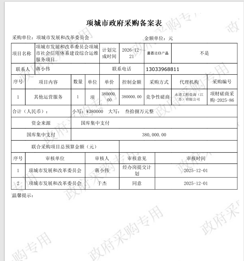 项城市发展和改革委员会项城市社会信用体系建设综合运维服务项目-竞争性磋商公告